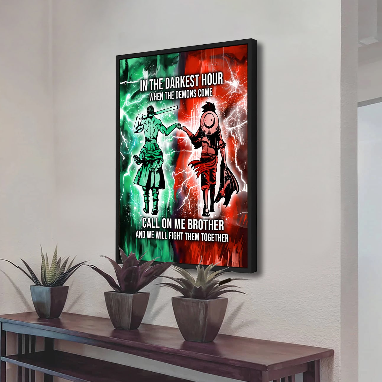 NOTICE: This is a more casual and often more artistic style of canvas presentation. A hanging canvas typically consists of a canvas fabric sheet with two wooden bars attached at the top and bottom. The top bar includes a hanging mechanism, usually a string or a cord, for easy display. This style allows the canvas to hang freely against the wall, giving it a slightly informal, bohemian feel. The canvas in this case can be easily rolled for storage or transport.