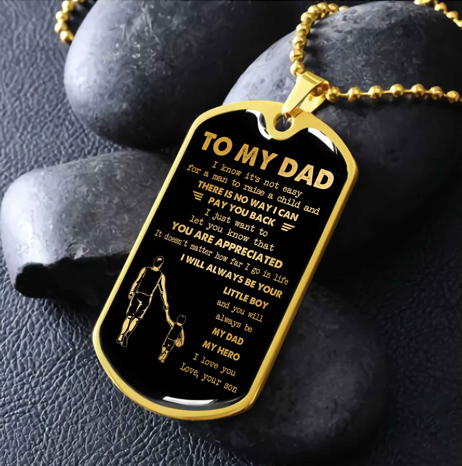 Dragon B GK-Father and Kid- Millitary Chain 18K Gold Plated To My Dad I Know It's Not Easy - I Will Always Be Your Little Boy Gift From Son To Dad Father's Day Gift